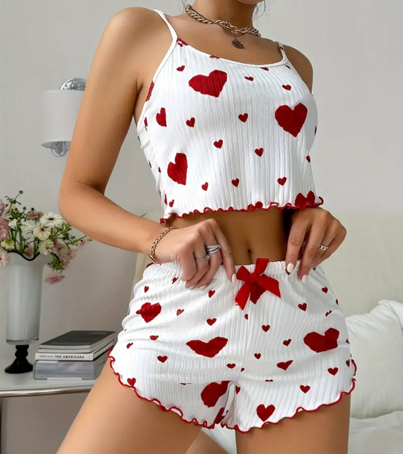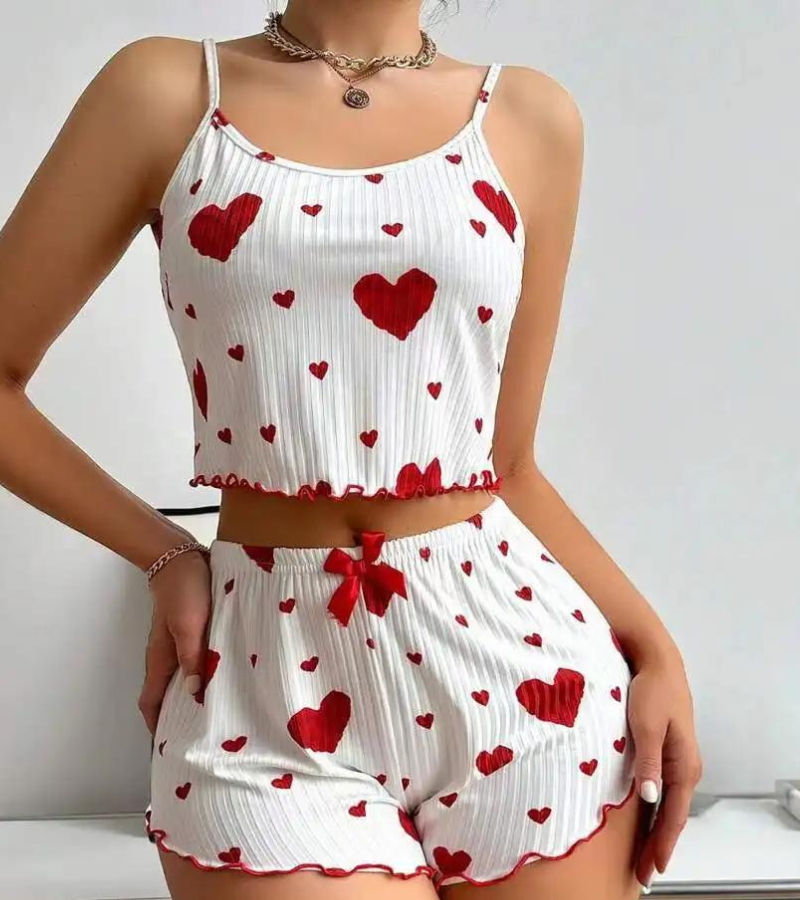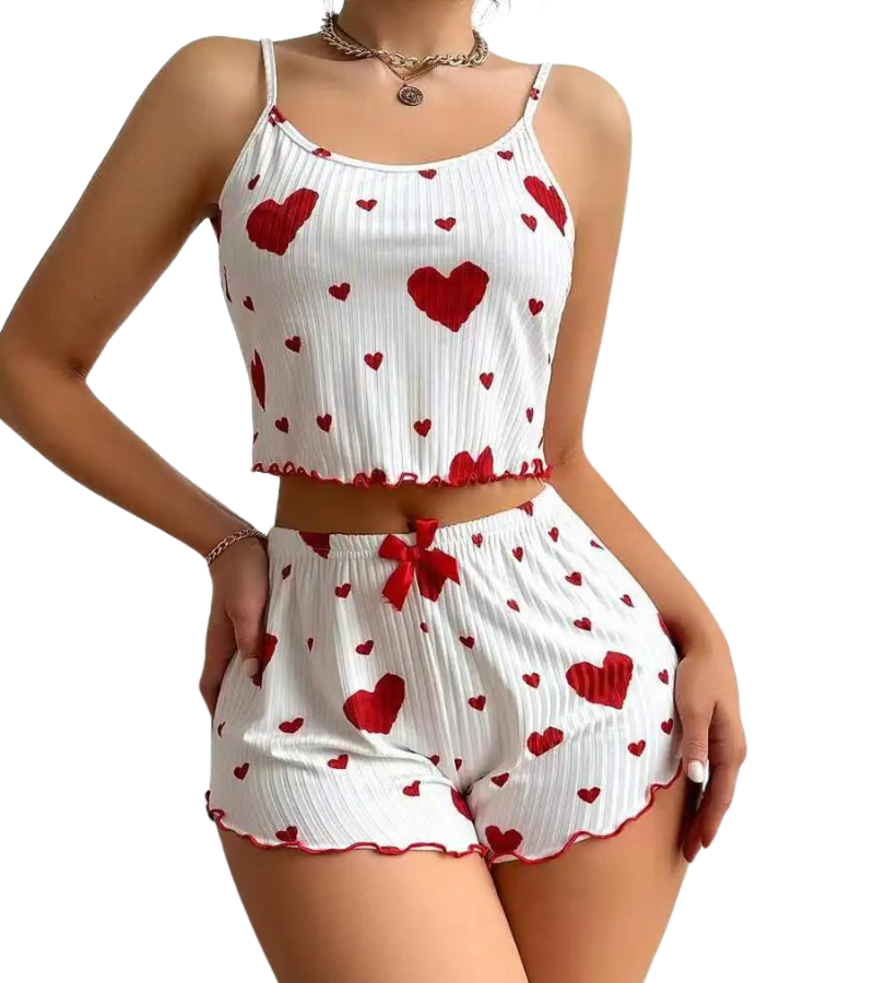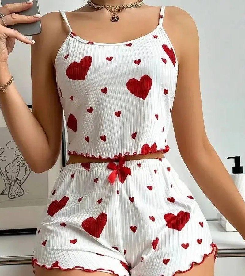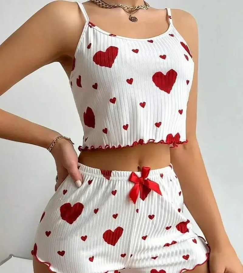 Lad dig glide ind i drømmeland med stil med vores åndbare Heart-nattøj til kvinder, der er designet til ultimativ komfort. Det lette, ventilerede stof holder dig kølig og komfortabel, hvilket gør det perfekt til varme nætter eller afslapning i huset.