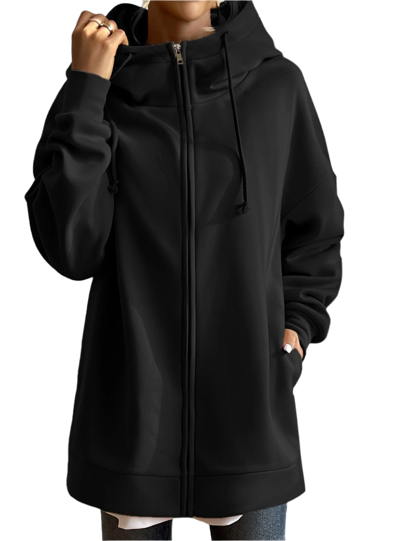 Hoodien kombinerer sporty charme med afslappet elegance, hvilket gør den perfekt til både træning og afslapning. Lynlåsdesignet giver ekstra alsidighed, så du nemt kan lagdele eller bære den alene.
