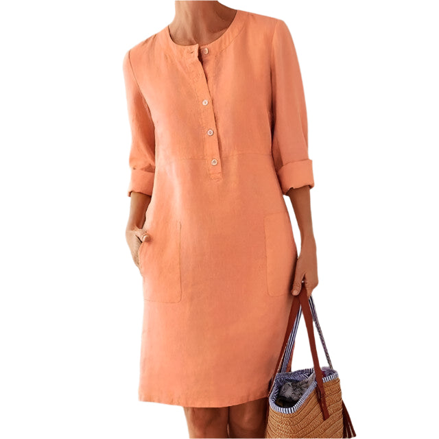 Designet med et tidløst snit og en flatterende pasform, er denne kjole ideel til varme dage. Den fås i flere trendy farver, så du kan vælge den, der passer bedst til din stil.
