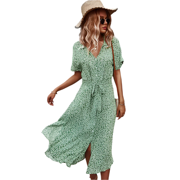 Kvinders Sommerkjole Blomsterprint Snøre Bomuld