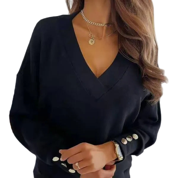 Kvinders V-hals Sweater Blød Bomuldsblanding