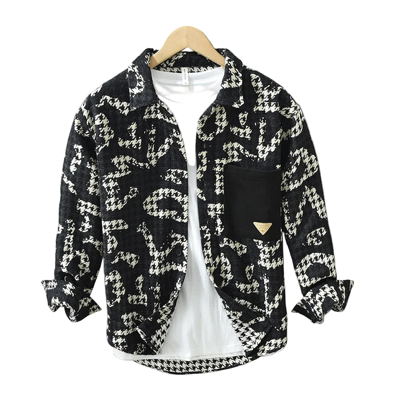 Skjorten er designet med et unikt trykt patchwork-mønster, der tilføjer en særlig flair til dit outfit. Den er perfekt til både afslappede udflugter og kontoret, hvilket gør den til et alsidigt valg i din garderobe.