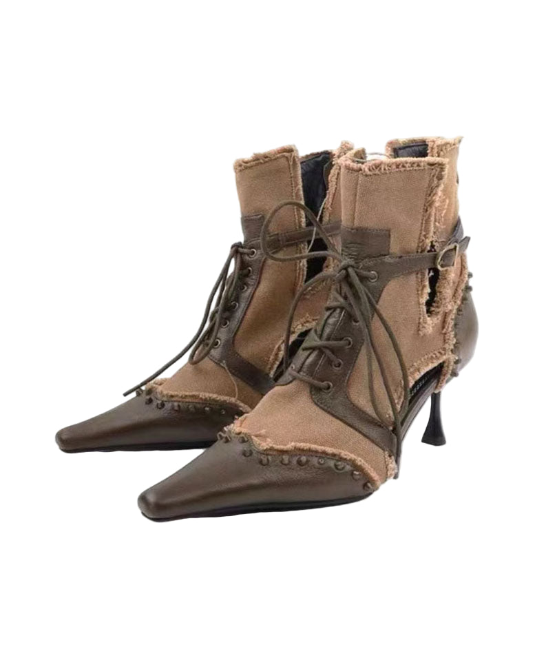 Kvinders Højhælede Støvler med Snørebånd