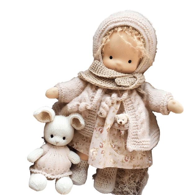 Oplev den unikke charme ved denne håndlavede dukke, der bringer blødhed og nostalgi ind i legestunden. Hver dukke er skabt med omhu og opmærksomhed på detaljer, hvilket gør den til et værdifuldt minde for børn.