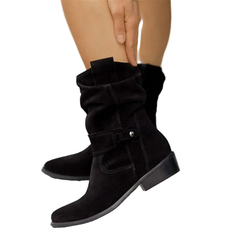 Med en floppy silhuet og en mandeltå, tilbyder disse støvler et friskt twist på et klassisk look. Den lave, stablede hæl giver en subtil højde, mens den bløde indersål sikrer, at du kan gå hele dagen uden ubehag.
