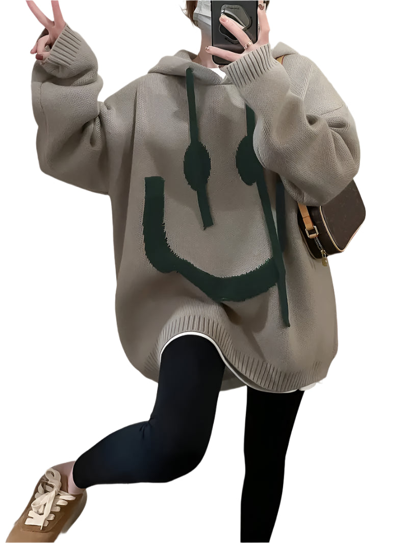 Bring et smil til din garderobe med denne komfortable og stilfulde hoodie. Den er ikke kun varm, men også en kilde til godt humør, perfekt til afslappede dage og hyggelige aftener.