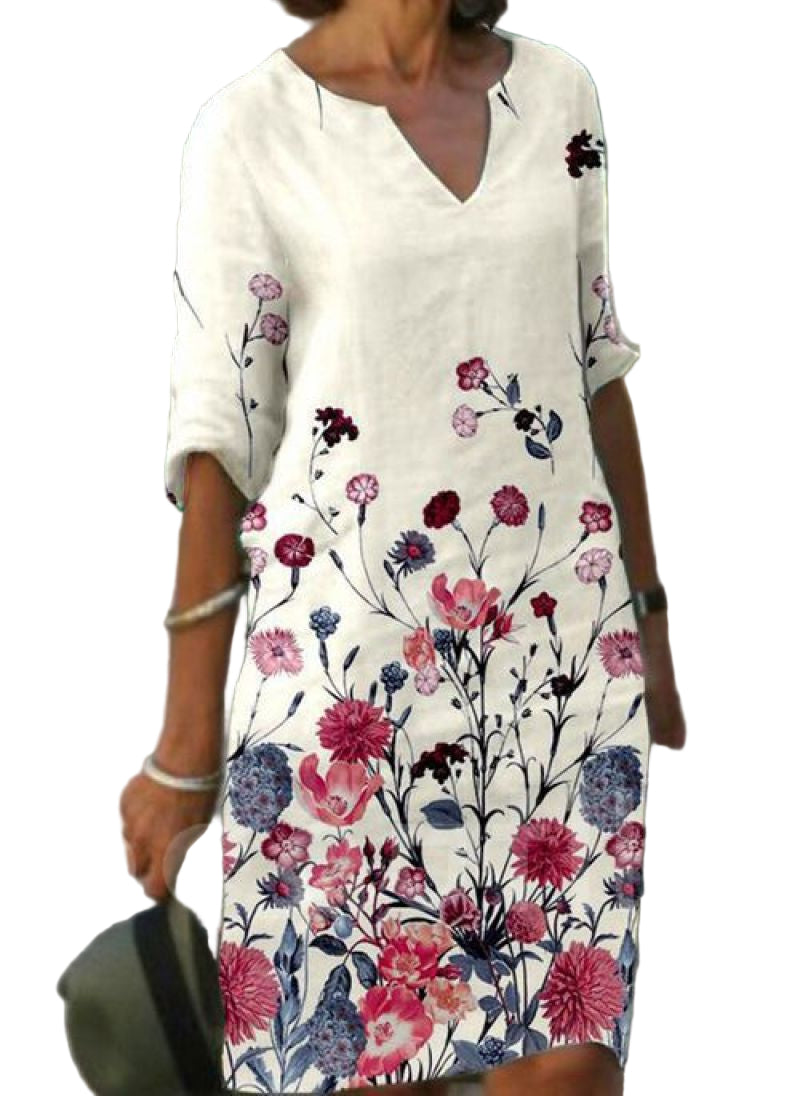 Kjole til kvinder med blomsterprint og midi-længde