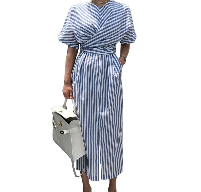 • TIDSLØS ELEGANCE: Løft din sommerstil med den klassiske udstråling fra vores blåstribede bandage-langkjole til kvinder. Det tidløse stribede mønster udstråler raffinement og sikrer, at du gør dig bemærket, uanset hvor du går.